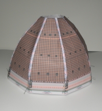 Auf Grund dieser Veranschaulichung wurde es leichter, sich die späteren Ausmaße des Modells vorzustellen und etwaige Fehler schneller zu beheben. Für den Bau des Grobmodells schnitt ich acht ellipsenförmige Dreiecksstreifen in der passenden Länge und Breite, sowie der ungefähren Form aus und klebt sie zusammen.